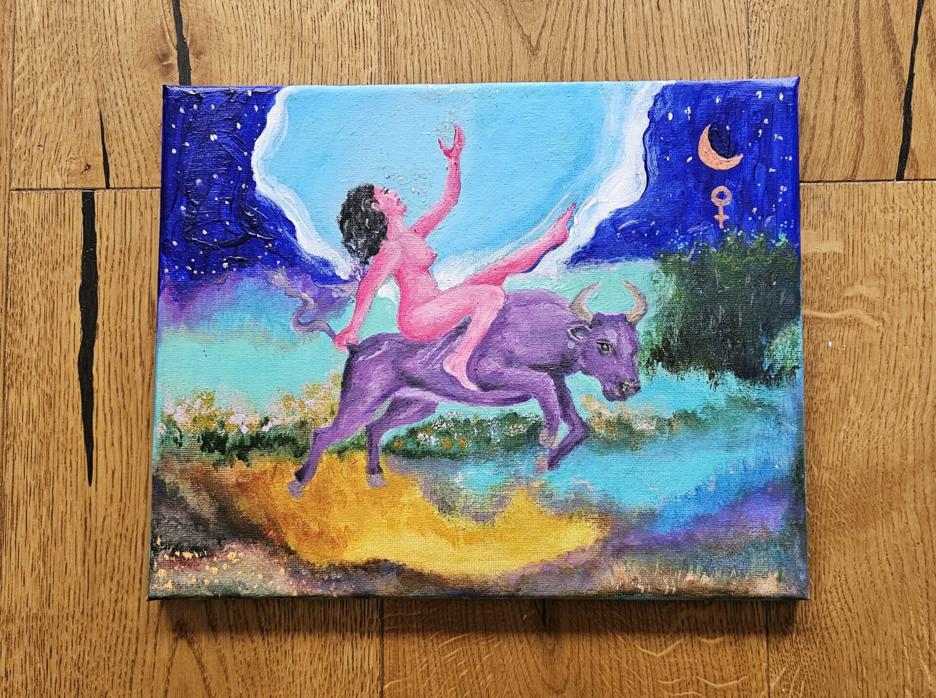 “Pełnia w Byku” Ziemia, Ciało, Przyjemność. Sięganie po “zakazany owoc”. Byczenie się – lenistwo, które daje odpoczynek i pomaga sprowadzić Duszę do Ciała.